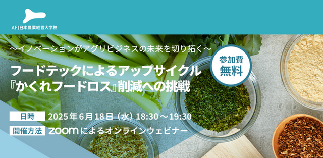 一般社団法人アグリフューチャージャパン(理事長:合瀬宏毅、東京都港区)は、アグリビジネス領域において現在活躍されている方やイノベーション・新規事業支援を専門とされている方にご登壇いただき、アグリビジネスの新たな可能性や最新のビジネス動向、イノベーションに繋がる着想などについてお話しいただくオンラインセミナーをシリーズでお届けいたします。