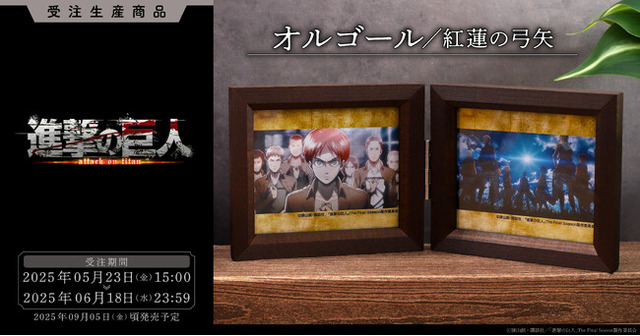 木製の見開きフレーム型オルゴールが登場!同封のイラストカードには、固く決意する姿が力強い、作中のワンシーンを採用しました。もちろんお手持ちのブロマイド等に変えていただくことも可能です。楽曲には強い印象を持つ「紅蓮の弓矢」を。オルゴールならではの独特な雰囲気のある仕上がりをお楽しみください。