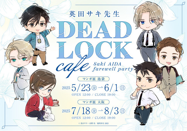 株式会社TORICO(本社:東京都千代田区、代表取締役社長:安藤拓郎)は、英田サキ先生追悼コラボカフェ『DEADLOCK cafe -Saki AIDA farewell party-』 at マンガ展 を2025年5月23日(金)から6月1日(日)まで同社が運営する東京・池袋の「マンガ展 池袋」にて、その後2025年7月18日(金)から8月3日(日)に大阪谷町の「マンガ展 大阪」にて開催いたします。
