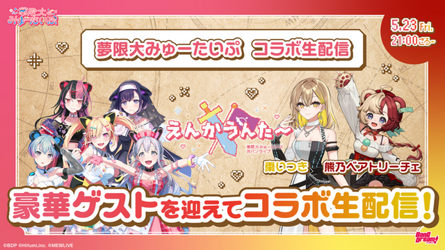 バンドリ!プロジェクトより誕生したバーチャル系バンド「夢限大みゅーたいぷ」(通称:ゆめみた)は、夢限大みゅーたいぷ公式YouTubeチャンネルにて、5月23日(金)に棗いつき・熊乃ベアトリーチェとのコラボ生配信を実施しました。