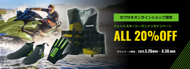 株式会社カワサキモータースジャパン(本社:兵庫県明石市、代表取締役社長:佐伯 健児)は、公式オンラインショップにて「カワサキオンラインショップ限定!ジェットスキーシーズンインキャンペーン」を2025年5月26日(月)から2025年6月30日(月)までの期間限定で実施いたします。