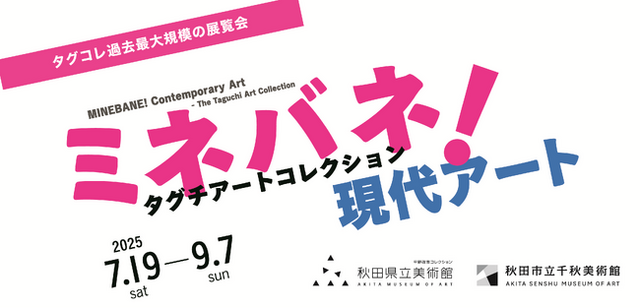 タグチアートコレクションは、実業家の田口弘氏、娘の美和氏の2代にわたって収集された、アメリカ・ヨーロッパ・中南米・アフリカ・アジア・日本など世界各地の現代アート作品からなる国内有数のコレクションです。 本展は、秋田県立美術館と秋田市立千秋美術館の2会場で、グローバルな視点で選び抜かれた、個性豊かな現代アートの世界を約100点により紹介するものです。