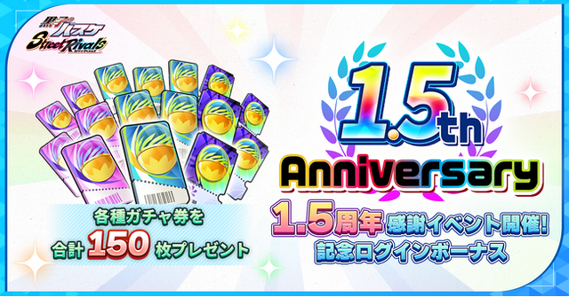 株式会社ファイブクロスは、アニメ『黒子のバスケ』の3Dバスケゲーム『黒子のバスケ Street Rivals』(黒バスSR)が本日よりリリース1.5周年アニバーサリーイベントを開催いたします。