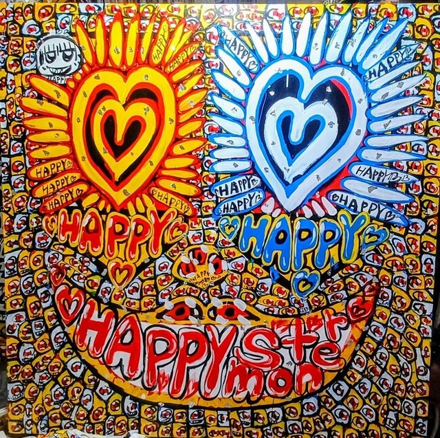 大阪芸術大学 美術学科出身。学生時代より、キャラクター「ハッピーモンスター」を描きはじめ、キャンバスのみならず、人形等の立体物へと、現在も増殖している。