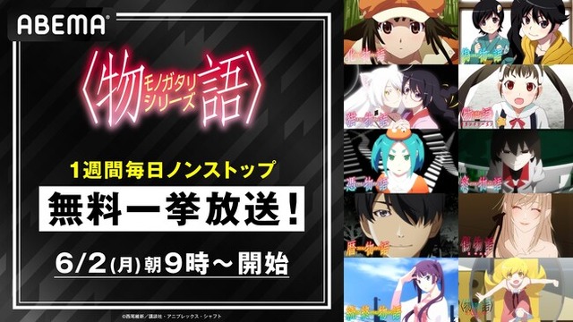 新しい未来のテレビ「ABEMA」は、2025年6月2日(月)から1週間にわたり、「〈物語〉シリーズ」全シリーズのノンストップ無料一挙放送を実施いたします。