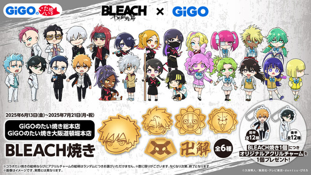 ・GiGOのたい焼き総本店とGiGOのたい焼き大阪道頓堀本店でオリジナルアクリルチャームがランダムで1個付いてくるコラボたい焼き「BLEACH焼き」の販売を行います。