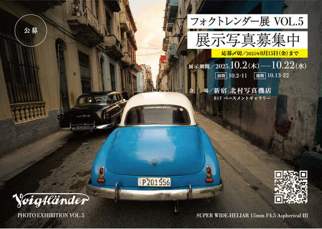 (株)コシナ(長野県中野市)は、2025年10月2日(木)から新宿 北村写真機店にて「フォクトレンダー展 PHOTO EXHIBITION VOL.5 」の開催を予定しています。この写真展は、写真家 大村英明 氏が主催し、招待写真家の作品と公募作品を展示する合同写真展です。