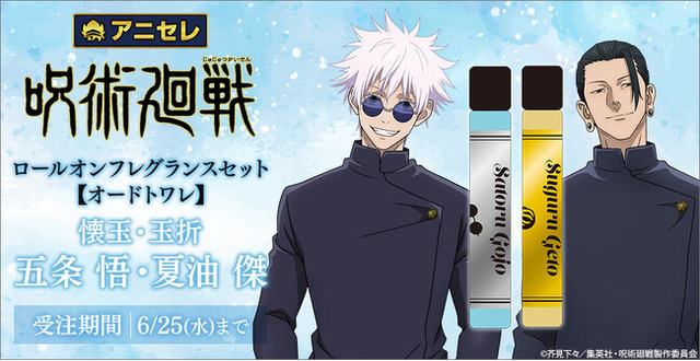 『animate LIMITED SELECTION(アニセレ)』とは、アニメ・コミック・ゲームの専門店「アニメイト」が様々なグッズメーカーと共同で商品を企画、アニメイトでしか手に入らない高品質な受注生産商品をお客様へお届けするプロジェクトです。2025年8月29日に発売を予定している『呪術廻戦』「懐玉・玉折」のロールオンフレグランスセット【オードトワレ】は、五条 悟と夏油 傑のキャラカラーをイメージした香りです。全国アニメイト・アニメイト通販にて2025年6月25日まで受注受付を行っております。