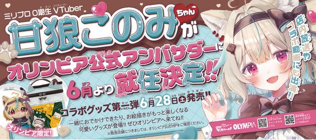 今回のコラボレーションを通じて、ティーン世代のVTuberファンの皆さまにも、甘狼このみさんの世界観を感じながら、安心して楽しめる身近な場所となれるよう、オリンピアから「カワイイ」を発信してまいります。