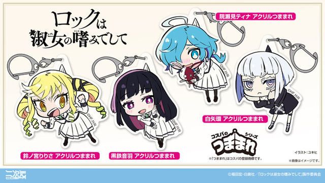 4月より放送中のTVアニメ『ロックは淑女の嗜みでして』より、「鈴ノ宮りりさ」「黒鉄音羽」「院瀬見ティナ」「白矢環」