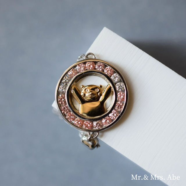 本作は、K18イエローゴールドであしらったくまモンのモチーフを中央に配し、周囲をピンクとホワイトの最高品質のラボグロウンダイヤモンドでデコレーション。まさに、親しみやすさとラグジュアリーを兼ね備えた究極のアイテムです。