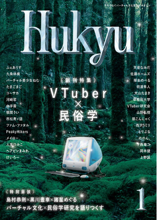 Hukyu創刊号では、《VTuberを続(つ)ぐ、民俗学で継ぐ》をテーマに、民俗学(および考現学)の視点を援用しながら、偏りのない多角的な視点でVTuberを捉え、記録し、普及することを目指しています。