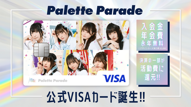 [画像2: https://prcdn.freetls.fastly.net/release_image/73456/242/73456-242-38ec6dbe5b3dcc1262b8c8b1c6b36c57-1016x774.png?width=536&quality=85%2C75&format=jpeg&auto=webp&fit=bounds&bg-color=fff ]Palette Parade公式クレジットカードは、アーティスト写真を使用した、こだわりが詰まった一枚です。 白を基調としつつ、メンバーのイメージカラーをあしらったカラフルなデザインを通じて、パレードのような賑やかで楽しい世界観を表現しています。メンバーの明るく魅力的な表情が、カードを使うたびにポジティブな気持ちをお届けします。 また、ナンバーレス仕様のため、セキュリティ面でも安心して利用でき、同デザインの“保存用カード”もご用意。コレクションとしてもお楽しみいただけます。