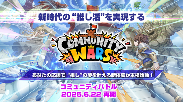 シンガポールを拠点にグローバルで課題解決ゲームプラットフォーム事業を展開するDigital Entertainment Asset Pte. Ltd.(本社:シンガポール、Co-CEO:吉田直人・山田耕三、以下 DEA)は、運営するスマートフォン向けゲームアプリ『Community Wars(コミュニティウォーズ)』において、ユーザーのゲーム内活動が現実世界の「推し」の夢の実現を後押しする人気イベント「コミュニティバトル」を、来る2025年6月22日(日)18時より再開することをお知らせいたします。なお、再開後初シーズンのコラボレーション詳細は明日6月6日(金)に発表いたしますので、ご期待ください。