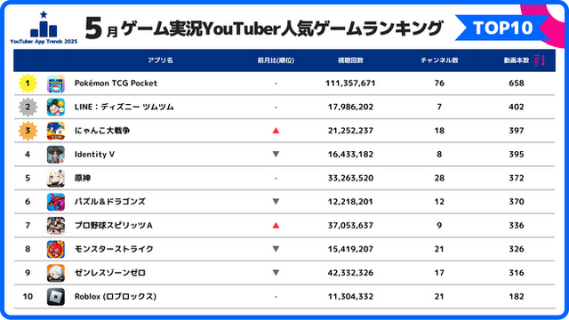 株式会社スパイスマートは、2025年5月におけるゲーム実況YouTuberが取り上げたスマホゲームのランキングをもとに、実況トレンドの分析調査を実施しました。