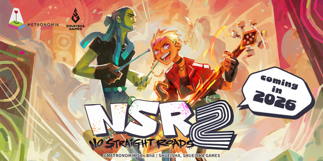 株式会社集英社ゲームズ(本社:東京都千代田区、以下 集英社ゲームズ)は、本日6月9日にマレーシアのゲームスタジオ・Metronomikが手掛ける『No Straight Roads 2』(ノー・ストレート・ロード 2)のグローバルパブリッシャーとして協業することと2026年にSteamにて発売することを発表いたしました。前作『No Straight Roads』は、2020年8月25日に発売され、独特なビジュアルや個性的なキャラクター、BGMにあわせてビートを刻む軽快なアクション面などが高く評価され、「BEST OF E3 2019」や「EXCELLENCE IN SOUND DESIGN AWARD」を獲得いたしました。その続編となる本作では、スターダムに上り詰めたメイデイとズークが、新たなメンバーを加えて4人でバンドを結成!インパクトが強いボスたちと戦いながらロードツアーを行うアクション・ミュージックアドベンチャーゲームです。