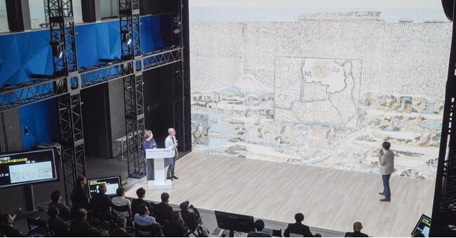 江戸時代の地震に関する史料を、東京大学地震研究所の大邑潤三助教らが監修し、8K映像で展示。被災状況や当時の社会背景が描かれた「古地図」や「ナマズ絵」を、超大型LEDディスプレイで映し出すことにより、細かなの文字や色彩まで鮮明に表示。来場者は、防災意識の向上や災害教育の教材としての活用可能性を体感しました。