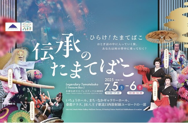 公益財団法人東京都歴史文化財団 アーツカウンシル東京、八王子市、公益財団法人八王子市学園都市文化ふれあい財団が主催する「伝承のたまてばこ~多摩伝統文化フェスティバル2025~」を2025年7月5日(土)、6日(日)の2日間にわたり、八王子市芸術文化会館(いちょうホール)をメイン会場に、JR八王子駅北口エリアで開催します。八王子や多摩地域に伝わる伝統文化・芸能の魅力を気軽に鑑賞・体験できる機会として実施する「伝承のたまてばこ~多摩伝統文化フェスティバル2025~」。誰でも気軽に参加できるような仕掛けや催し物をたくさんご用意してお待ちしています!