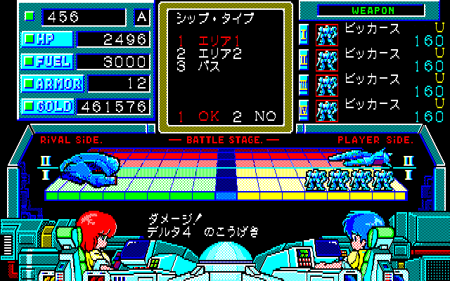 ゲームはトップビューとなっており、各地を巡りながら32種類のコンテナを上手に売買して資金を貯め、マイシップや機動兵器などを強化することになります。