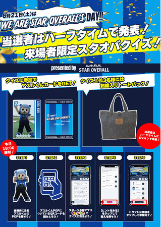 アスルクラロ沼津を応援すべく山本被服と今年も予想でコラボ!6月21日(土)「WE ARE STAR OVERALL’S DAY」にてスタオバクイズイベント開催!成績上位者には「STAR OVERALL」刺繍入りトートバッグをプレゼント!!