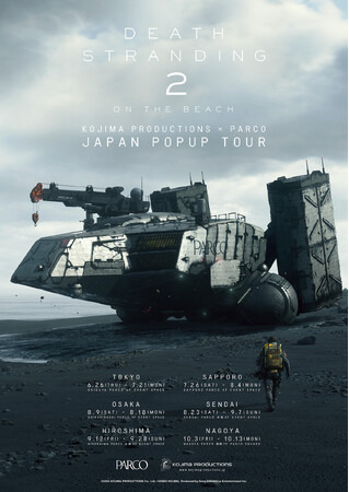 株式会社パルコ(本部:東京都渋谷区、以下パルコ)は全国6都市(渋谷・札幌・仙台・名古屋・心斎橋・広島のPARCO)にて、KOJIMA PRODUCTIONSが贈る世界的人気ゲーム『DEATH STRANDING 2: ON THE BEACH(以下デス・ストランディング 2)』発売記念イベント【DEATH STRANDING 2 JAPAN POPUP TOUR 】を開催いたします。