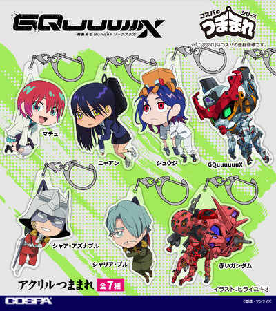 公式キャラクターアパレル・グッズのCOSPAブランドより『機動戦士Gundam GQuuuuuuX(ジークアクス)』新作つままれ全7種が登場。マチュ、ニャアン、シュウジ、シャア・アズナブル、シャリア・ブル、GQuuuuuuX、赤いガンダムがすべて描き下ろしの“つままれ”姿になって登場決定。