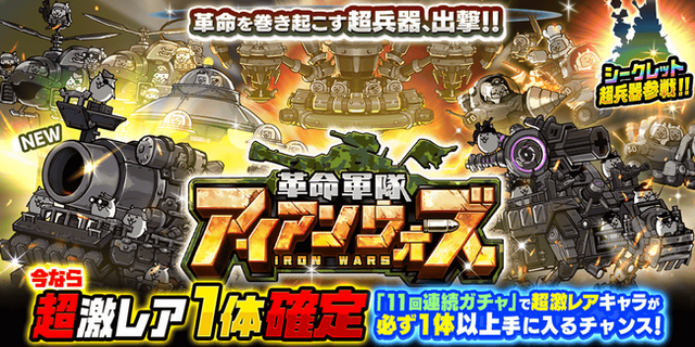 期間限定レアガチャ「革命軍隊アイアンウォーズ」に新キャラクター「曲射砲台ランチャーズ」が登場!