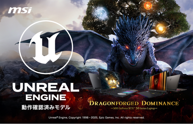 この度、エムエスアイコンピュータージャパン株式会社は、エピックゲームズジャパン合同会社の監修のもと、MSI ノートPCを対象にゲーム開発エンジン「Unreal Engine」の動作検証を実施。 その結果、複数モデルにおいてUnreal Engineの快適な動作を確認いたしました。これにより、MSIノートPCはゲーム開発や3Dコンテンツ制作において、より安心してご利用いただける選択肢となりました。