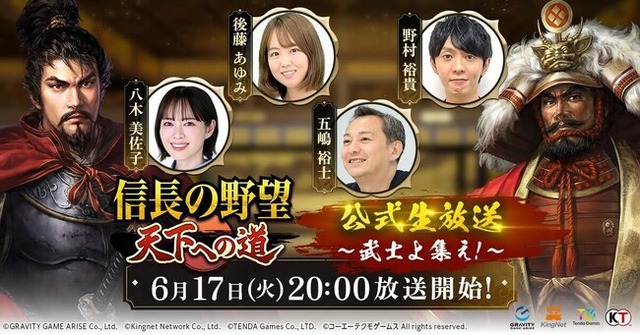 番組タイトル:『信長の野望 天下への道』公式生放送~武士よ集え!~放送日時:2025年6月17日(火)20時~21時30分(予定)
