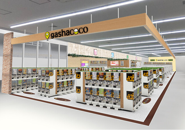 『gashacoco コーチャンフォーつくば』は、書籍、文具、音楽・映像、カフェ、4つの巨大な売場をワンフロアで複合した全国最大級の店舗『コーチャンフォーつくば店』の一部区画(およそ60坪)にカプセルトイ自動販売機を設置したカプセルトイ専門店です。