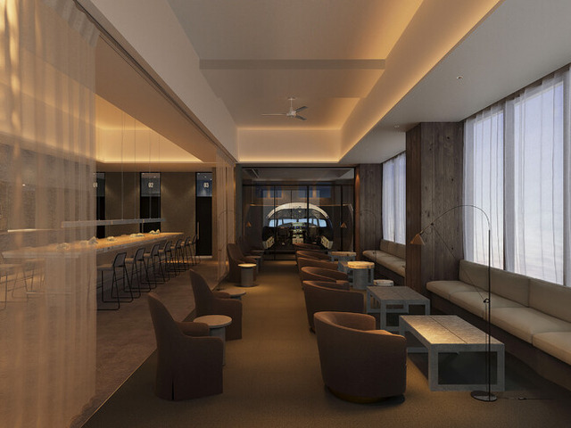 「DRAWERS」クリエイティブディレクター&デザイナーの小倉寛之氏 コメント「要素を削ぎ落とす事から導き出される無駄の無いデザイン」をテーマに、このラウンジに必要とされる機能を吟味しながらレイアウトを行いました。開放的な空間を意識し、奥に行くほどゆったり心地よく滞在できる要素を配置しました。間仕切りを設けず、間を設けたり目線を変えるなど、旅行中の滞在者が居心地よく過ごせる空間を目指しました。空間を構成するマテリアルには、再生 素材を用いるなど、シンプルな構成ながらも随所に素材の表情が伺える空間となっています。環境 にも配慮したサスティナブルな考えが訪れた皆さまにも伝わり、持ち帰っていただけることを願います。