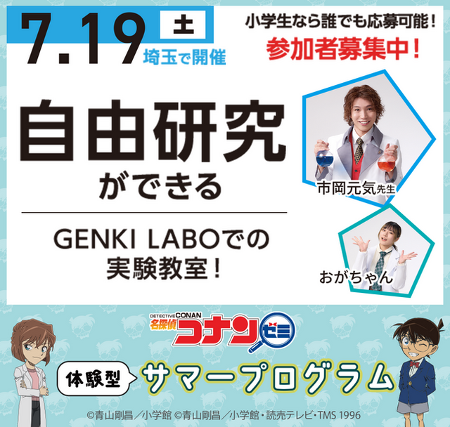 株式会社小学館集英社プロダクションが運営する、小学生向け通信教育「名探偵コナンゼミ」は、GENKI LABOとコラボレーションして、2025年7月19日(土)に特別な実験教室を開催します!