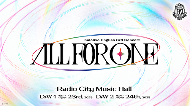 カバー株式会社(本社:東京都港区、代表取締役社長:谷郷元昭)は、弊社が運営する「ホロライブプロダクション」傘下の英語圏向けVTuberグループ「ホロライブEnglish」において、3回目の全体ライブイベント『hololive English 3rd Concert -All for One- 』を、現地時間2025年8月23~24日に「Radio City Music Hall(アメリカ・ニューヨーク)」にて開催する事をお知らせいたします。
