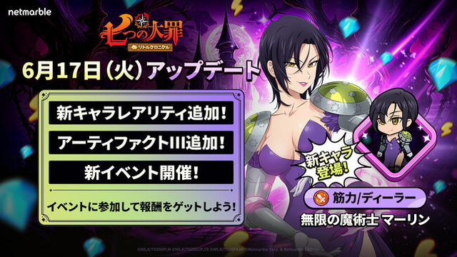 ネットマーブルは、スマートフォン向け新作スマホカジュアルRPG『七つの大罪~リトルクロニクル~』(略称:リトクロ、開発:Netmarble F&C Inc.)において、6月17(火)に、新レジェンドキャラ「無限の魔術士 マーリン」の追加や新ヒーローランクを追加するゲームのアップデートを実施いたしました。