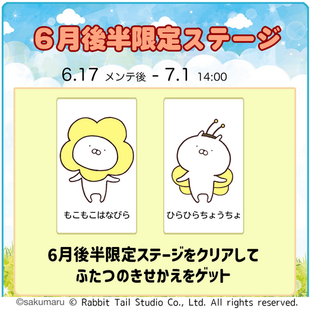 対象ステージクリアで、もこもこはなびら、ひらひらちょうちょの着せ替えがゲットできます!