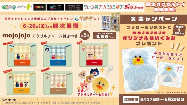また、限定カプセルトイ用商品の展開を記念し、モーリーファンタジー公式X・Instagram で「mojojojo オリジナルぬいぐるみ」が当たるプレゼントキャンペーンを開催いたします。