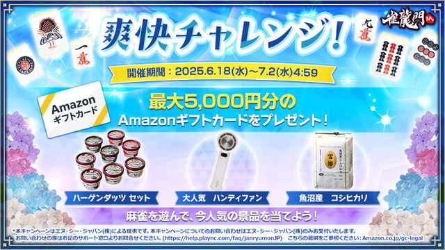 エヌ・シー・ジャパン株式会社(本社:東京都港区、代表取締役:林 元基(イム ウォンキ)、以下エヌシージャパン)は、PCとスマートフォン向け超美麗本格3D麻雀ゲーム『雀龍門M』にて、2025年6月18日(水)より「爽快チャレンジ」キャンペーンおよび、SNSキャンペーンの開催をお知らせします。
