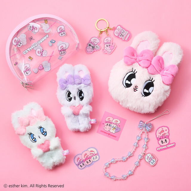エスターバニーは、韓国系アメリカ人であるエスター・キム氏がデザインした、POPでガーリーなテイストのバニーのキャラクターです。ロサンゼルスで生まれ、10代を東京で過ごしたエスター・キム氏が描く、多様な文化や価値観に触れた経験から生み出された独特の世界観が魅力で、若い女性を中心に多くの共感を得ています。