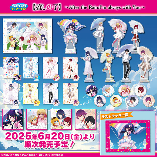 株式会社セガ フェイブは、2025年6月20日(金)より「セガ ラッキーくじ【推しの子】~ After the Rain:I'm always with You ~」をミニストップ、デイリーヤマザキ、各種ホビーショップ等にて順次発売いたします。