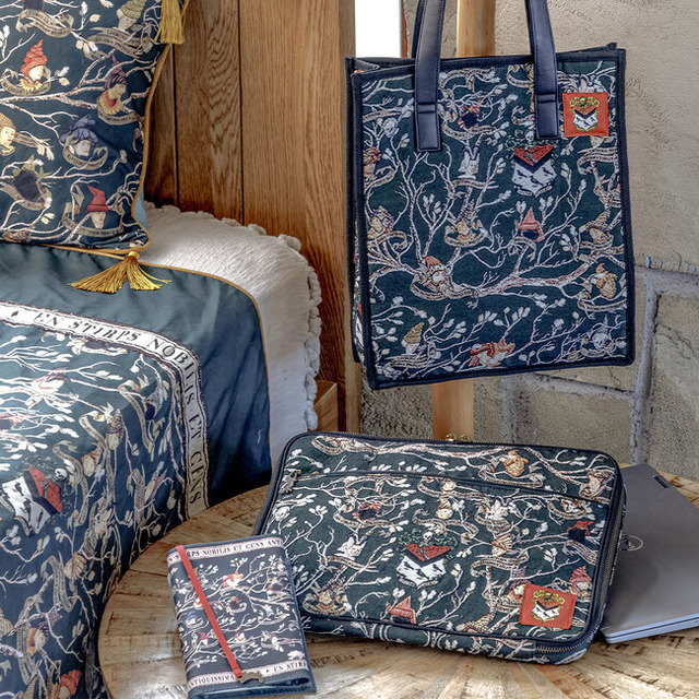 本シリーズには、サテンのリボンの先端に魔法動物のチャームがついた「ブックカバー」や普段使いにおすすめのマウスや充電器を収納できる、ポケット付きの「PC・タブレットケース」など4アイテムがラインアップ。魔法界において最も古く高貴で由緒正しきブラック家にふさわしい、上品でありつつ華やかなデザインに合わせた、ジャガード生地や合皮素材を使用した高級感あふれる商品がそろいます。