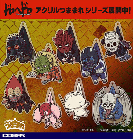 公式キャラクターアパレル・グッズのCOSPAブランドより『ドロヘドロ』新作つままれ全9種が登場。カイマン・ニカイドウ・心・能井・恵比寿・煙・キクラゲ・ギョーザ男・チダルマたちが“つままれ”姿になって登場。すべて、ちと氏による描き下ろしイラスト。