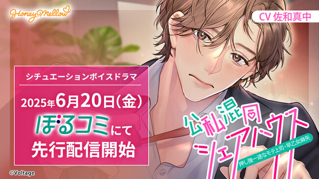 株式会社ボルテージ(本社:東京都渋谷区 代表取締役:津谷 祐司)は、シチュエーションボイスドラマレーベル「Honey Mellow」の「公私混同」シリーズの新作「公私混同シェアハウス ~押し強一途なモテ上司・早乙女麻矢」 (CV.佐和真中)を電子コミックストア「ぼるコミ」にて6月20日(金)より先行配信を開始したことをお知らせいたします。