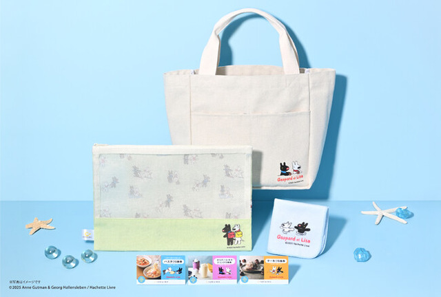 今回のサマーバッグは、遊び心あふれる柄のオリジナルトートバッグをはじめ、日常使いに便利なオリジナルミニタオル、旅を楽しむふたりの姿を描いた総柄のオリジナルトラベルポーチ、そして商品引換券3枚がセットになっています。夏らしく爽やかな色合いのグッズに「リサとガスパール」の世界観を散りばめ、毎日の生活にそっと彩りを添えるアイテムに仕上げました。