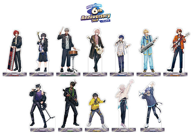今回新たに「HOLOSTARS BAND」をテーマとし、楽器やマイクを持ったイラストを使用した「アクリルスタンド」、「アクリルパネル」などが登場。その他にも、テーマにちなんだ「チケット風ステッカー」、「ピック型キーホルダーコレクション」などの新商品を発売いたします。