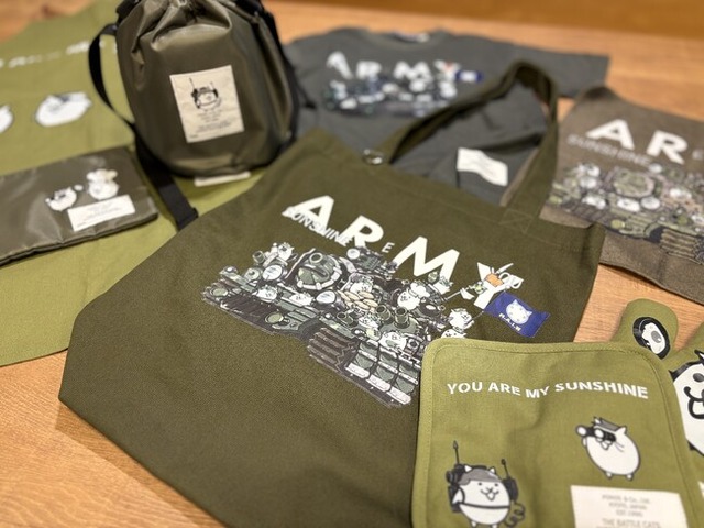 「撃滅戦車ギガパルド」「超撃滅戦車ギガパルド」をモチーフにデザインされたTシャツの他、エプロンやトートバッグなど、様々なグッズが販売されます。