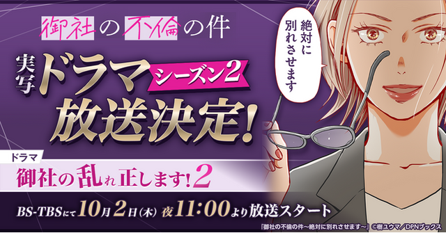 DPNブックスの人気作品『御社の不倫の件~絶対に別れさせます~』(著:樹ユウマ)の実写ドラマシーズン2の放送が決定しました!