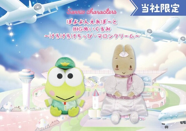 パイロット姿のけろけろけろっぴとキャビンアテンダント姿のマロンクリームの「BIGぬいぐるみ」がプライズに登場!