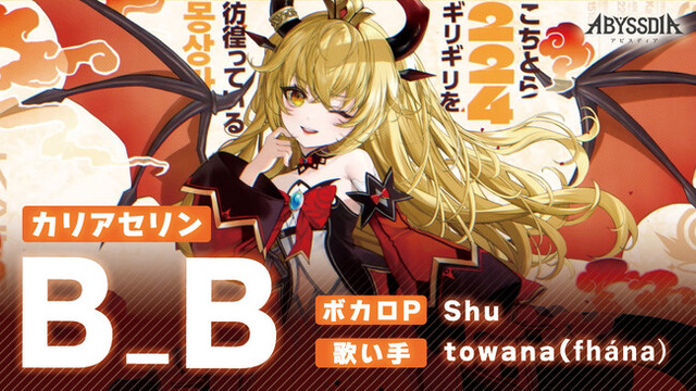 ISARIBI株式会社(代表取締役:田川 浩巳/本社:東京都千代田区)が運営するクリエイターレーベル「METEORA st.」は、2025年夏配信予定の美少女系RPG『アビスディア』(iOS / Android / Windows版)に登場するキャラクター“カリアセリン”のオリジナルPV楽曲「B_B」の歌い手を、fhanaのtowanaが担当したことを発表いたします。