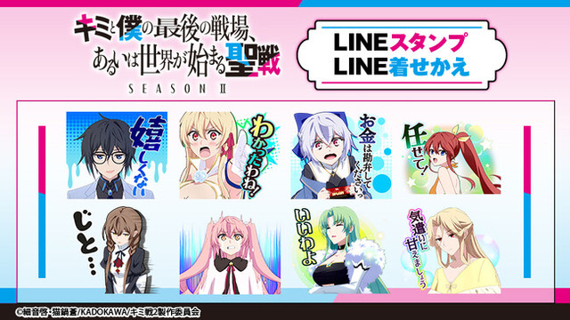 株式会社エムアップホールディングス(所在地:東京都渋谷区、代表取締役:美藤 宏一郎)の連結子会社であるキャラクターやアニメIPを活用したコンテンツ配信やコラボ実施を手掛ける株式会社 Creative Plus(所在地:東京都渋谷区、代表取締役:加藤 周太郎)は、TVアニメ『キミと僕の最後の戦場、あるいは世界が始まる聖戦 SeasonII』((C)細音啓・猫鍋蒼/KADOKAWA/キミ戦2製作委員会)LINEスタンプ&着せかえの配信を開始したことをお知らせいたします。