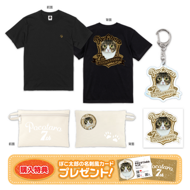 本ストアでは、ぽこ太郎の7歳を記念したオリジナルグッズ全10種を期間限定で販売。アクリルスタンドや缶バッジ、Tシャツ、ポーチなど、ファンにはたまらないラインナップとなっております。